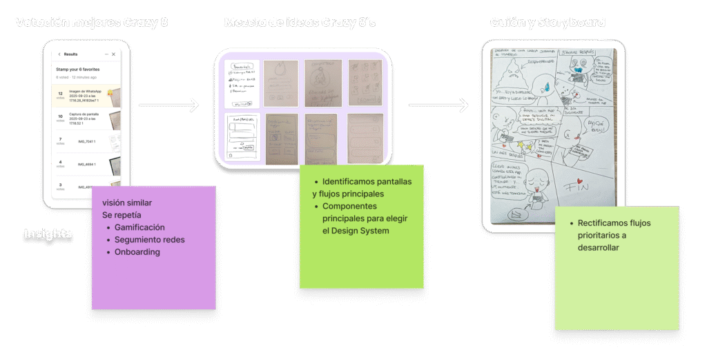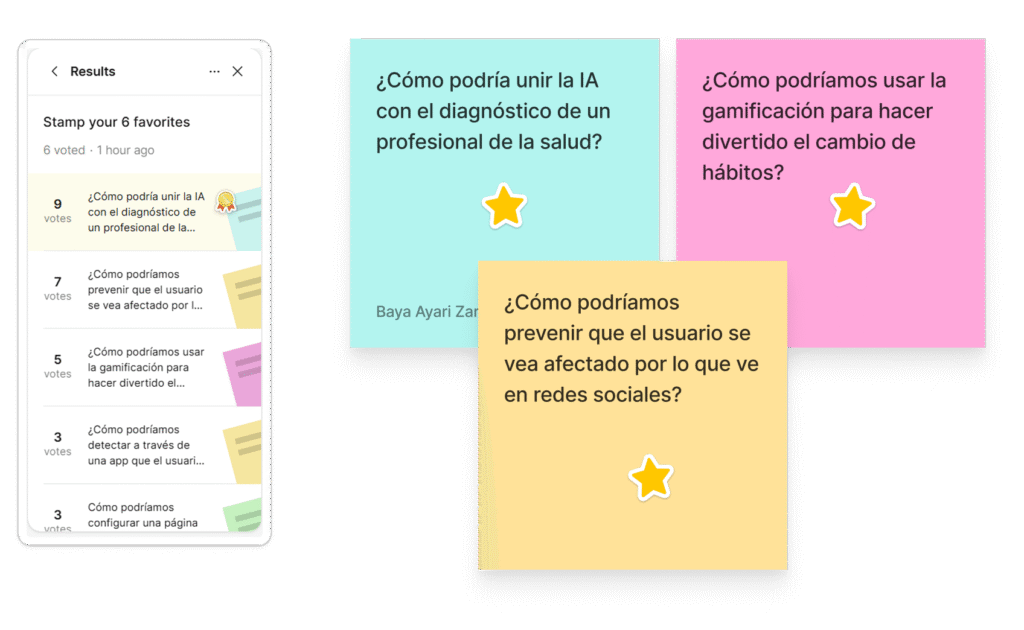 Revisamos al final del día un poco los insights que obtuvimos a partir de las herramientas que utilizamos y si había alguna aportación de valor más que pudiéramos someter a votación y así culminamos el primer día de nuestro desing sprint.