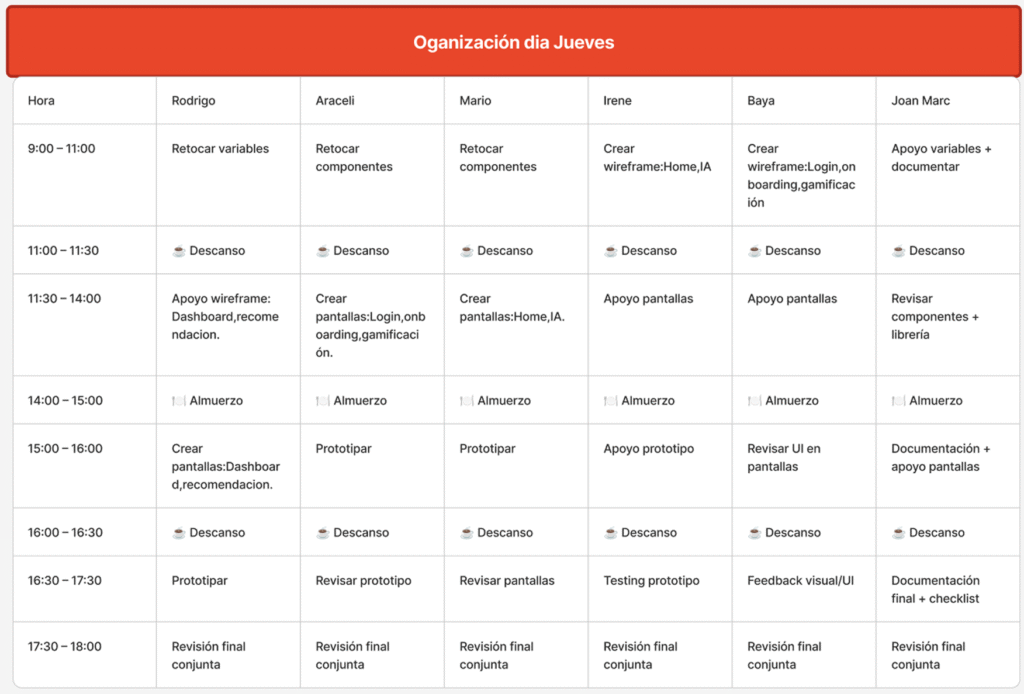 El proyecto LUMO, realizado bajo la metodología Design Sprint, representó una experiencia colaborativa enriquecedora en la que un equipo de seis personas trabajó de forma organizada, asumiendo roles de liderazgo rotativos cada día de la semana. Esta dinámica permitió que todos los integrantes experimentaran la toma de decisiones y la gestión del grupo, fomentando la comunicación, la empatía y la responsabilidad compartida. Cada jornada aportó una perspectiva distinta que enriqueció el proceso creativo y la resolución de problemas. El jueves, al contar con dos líderes, se reforzó el trabajo en equipo y la coordinación conjunta, evidenciando la importancia de la cooperación y la flexibilidad. En conjunto, el proyecto LUMO demostró cómo el Design Sprint puede acelerar la generación de ideas, validar soluciones en poco tiempo y fortalecer las habilidades de trabajo colaborativo dentro de un entorno de diseño.