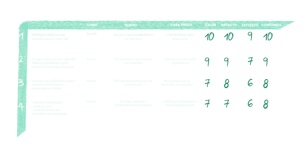 Para realizar la priorización utilice la mezcla de dos herramientas una fue la Historia de usuario (HU) y la otra que utilice fue ICE donde utilice el sistema de puntación de la primera herramienta con los criterios de la segunda.