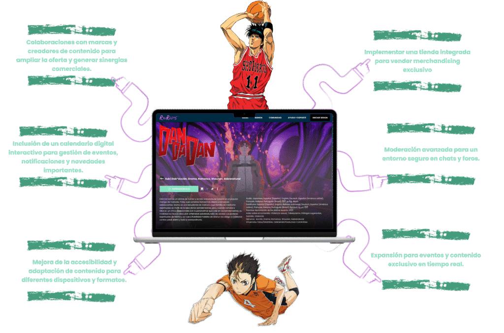 Crear plataforma web que combine la transmisión de contenido de manga y anime con funciones de interacción social en tiempo real, permitiendo que los usuarios disfruten, comenten y compartan experiencias sin salir del mismo entorno