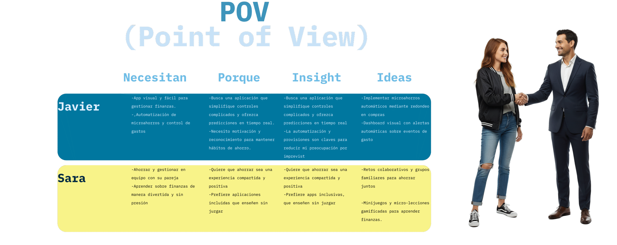 La herramienta Point of View (POV) permitió definir quién es el usuario, qué necesita y por qué lo necesita. Con ella se identificaron frustraciones y motivaciones para con ello fomentar la generación de ideas importantes.