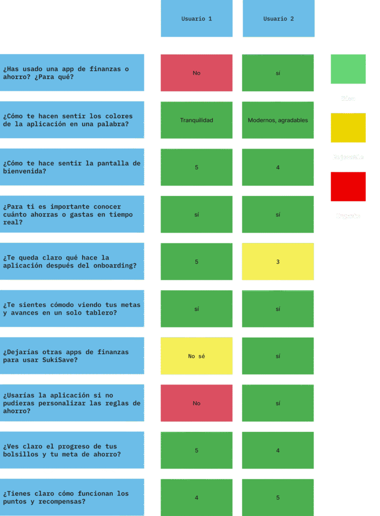 Mirando hacia atrás, siento que mi evolución ha sido integral: pasé de seguir procesos guiados a construir mi propio criterio como diseñadora. He aprendido a combinar la empatía con el pensamiento estratégico, a comunicar mis ideas con claridad y a defender decisiones de diseño con base en la investigación y la experiencia del usuario. SukiSave simboliza mi crecimiento profesional y personal, reflejando no solo mis habilidades técnicas, sino también mi capacidad para crear soluciones con propósito, creatividad y enfoque humano.
