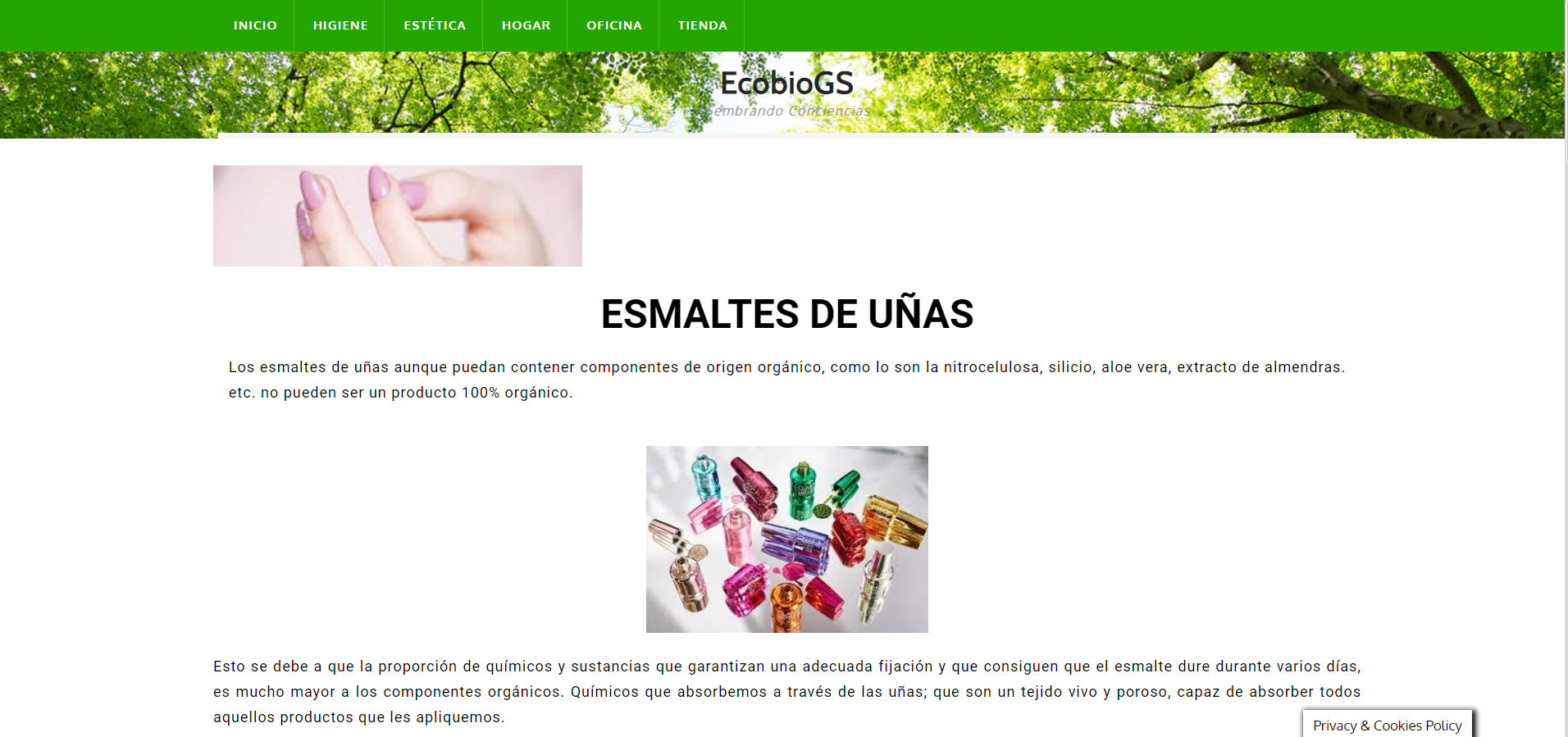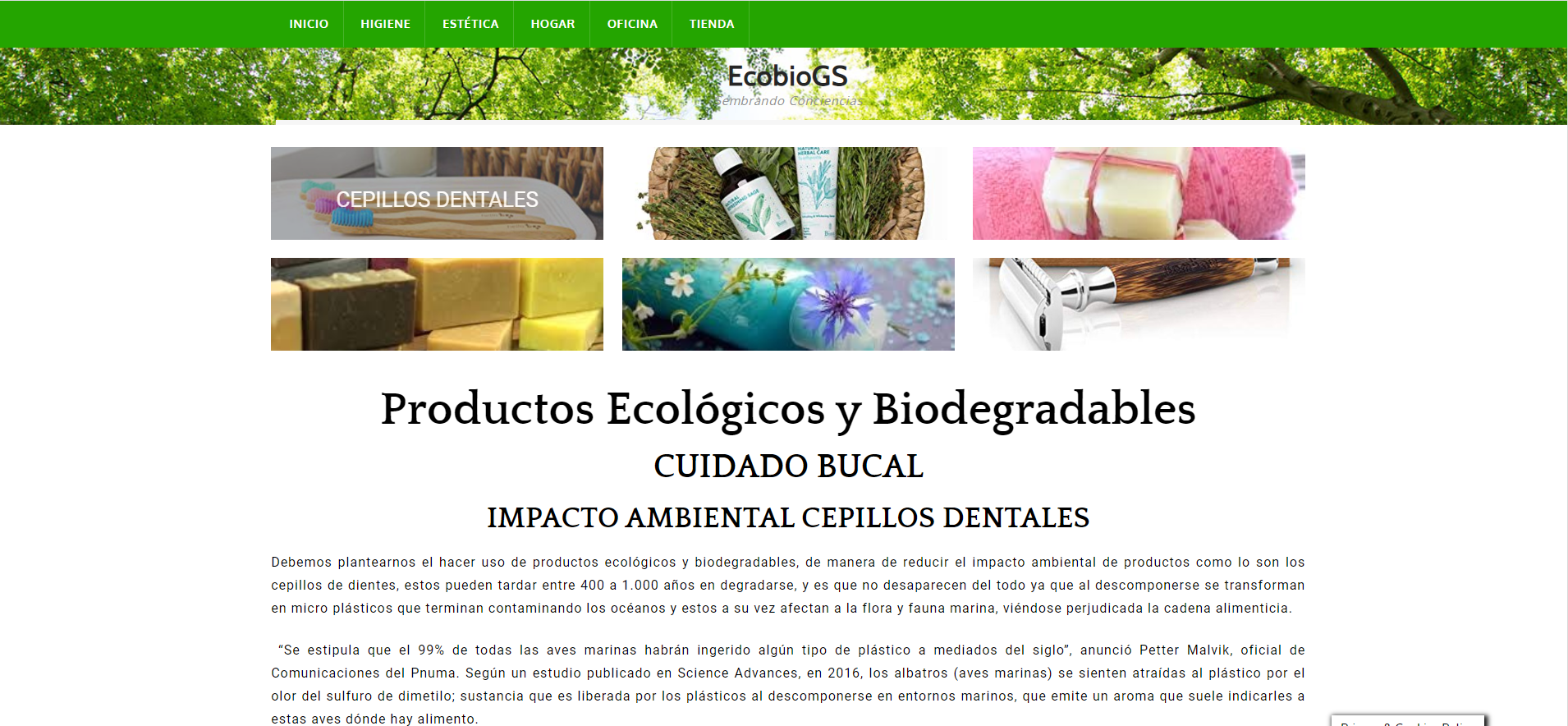 Esta es una página web que creamos para realizar ventas como afiliados de Amazon. Mi esposa y yo estamos involucrados en el movimiento de concientización sobre la reducción de la contaminación en el mundo, y nos pareció una excelente idea crear un sitio web que contribuyera a esta causa al promover la venta de productos ecológicos.